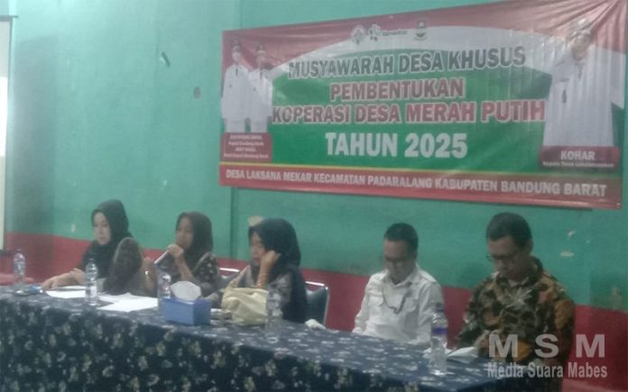 MediaSuaraMabes, KBB – Desa Laksanamekar Gelar acara Musyawarah Desa ( MUSDESSUS) merah putih Yang di Laksanakan di Aula Gedung Olah Raga Desa, Laksanamekar Kecamatan Padalarang Kabupaten Bandung Barat KBB.