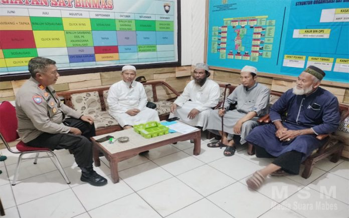 MediaSuaraMabes, Ketapang Kalbar – Dalam rangka memperkuat sinergi antara Polri dan tokoh agama untuk menciptakan situasi keamanan dan ketertiban masyarakat (sitkamtibmas) yang kondusif di wilayah Kabupaten Ketapang, Kasat Binmas Polres Ketapang, AKP H. Sumiadinata, melaksanakan kegiatan silaturahmi bersama para tokoh Agama /ulama di ruang Sat Binmas Polres Ketapang. Senin, (9/6/ 2025)