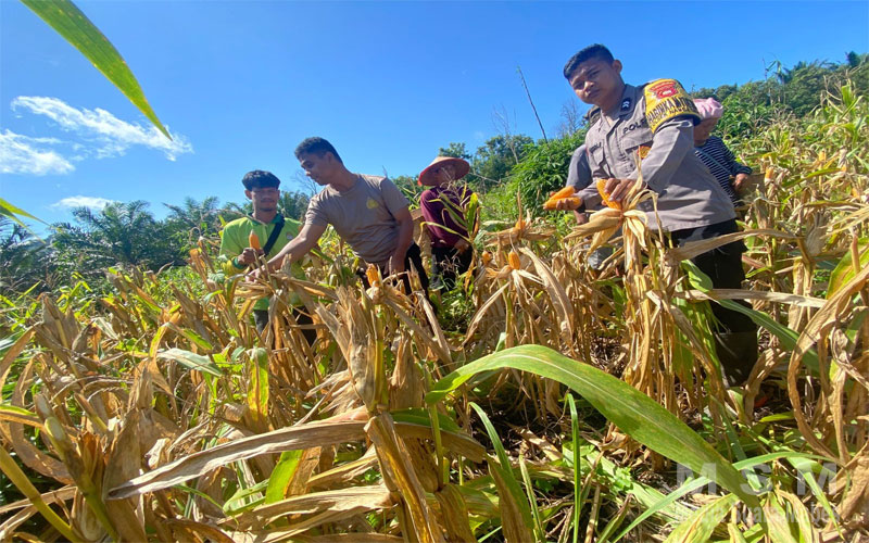 Kapolsek Nanga Tayap Panen Jagung Hibrida Bersama Kelompok Tani “Maju Bersama”